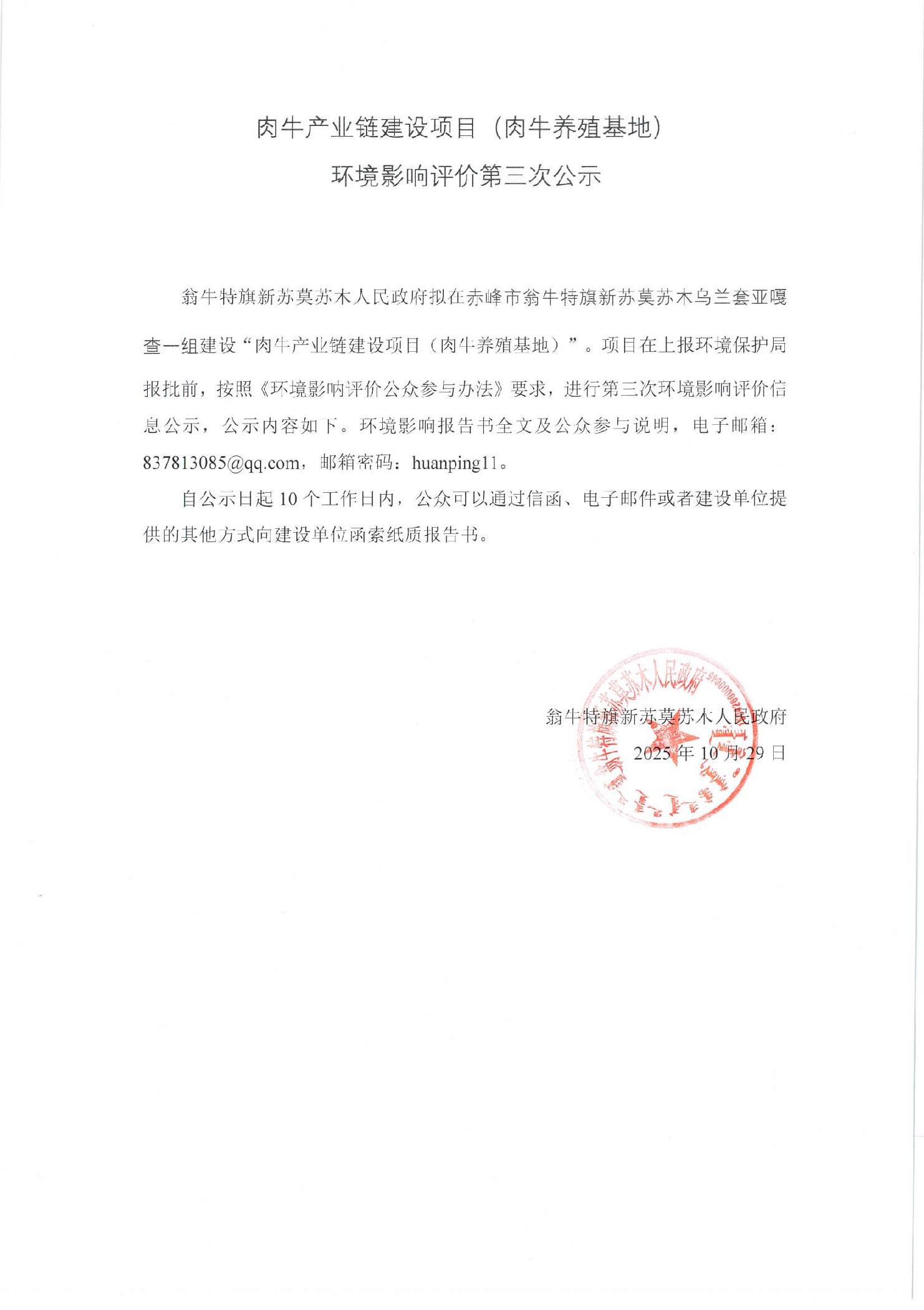 肉牛产业链建设项目(肉牛养殖基地)环境影响评价第三次公示