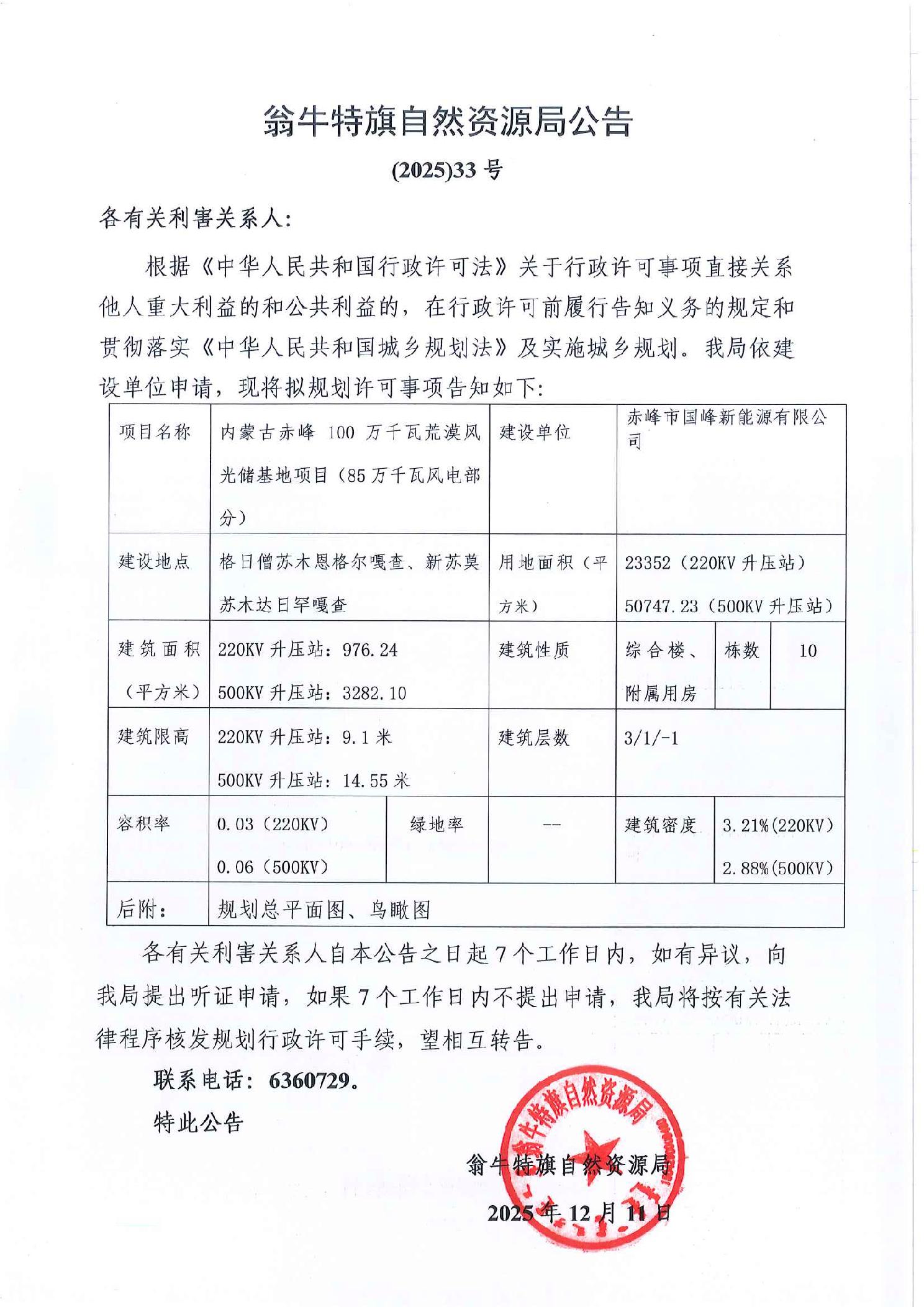 翁牛特旗自然资源局公告 (2025) 33号