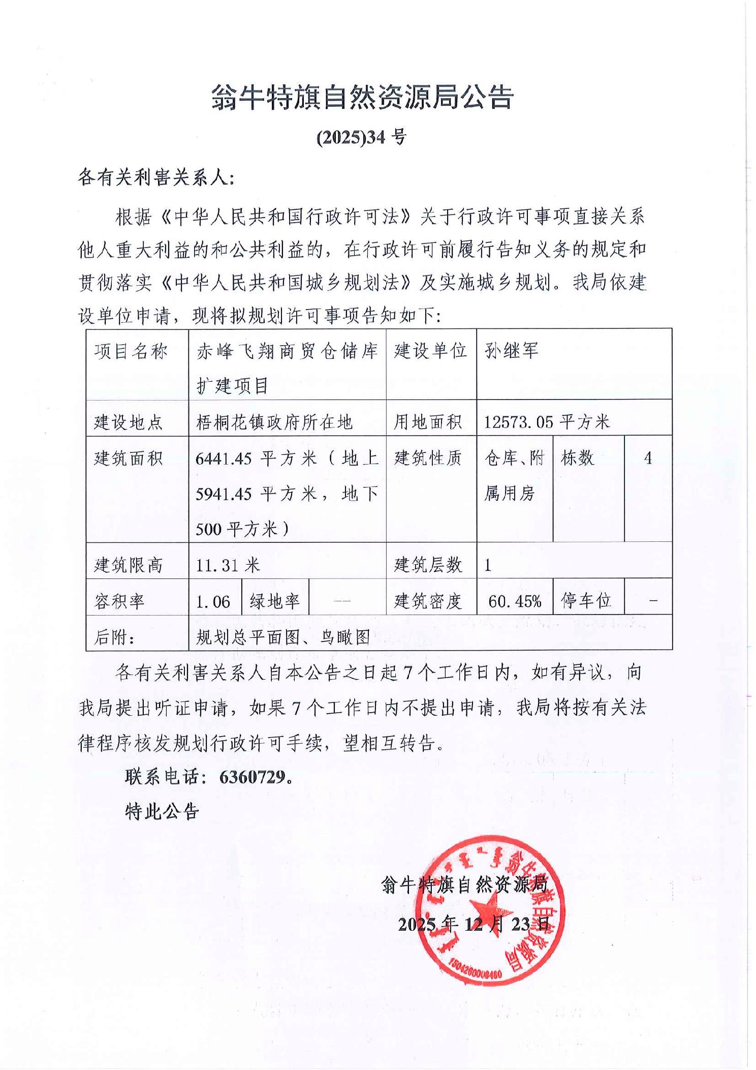 翁牛特旗自然资源局公告 (2025) 34号