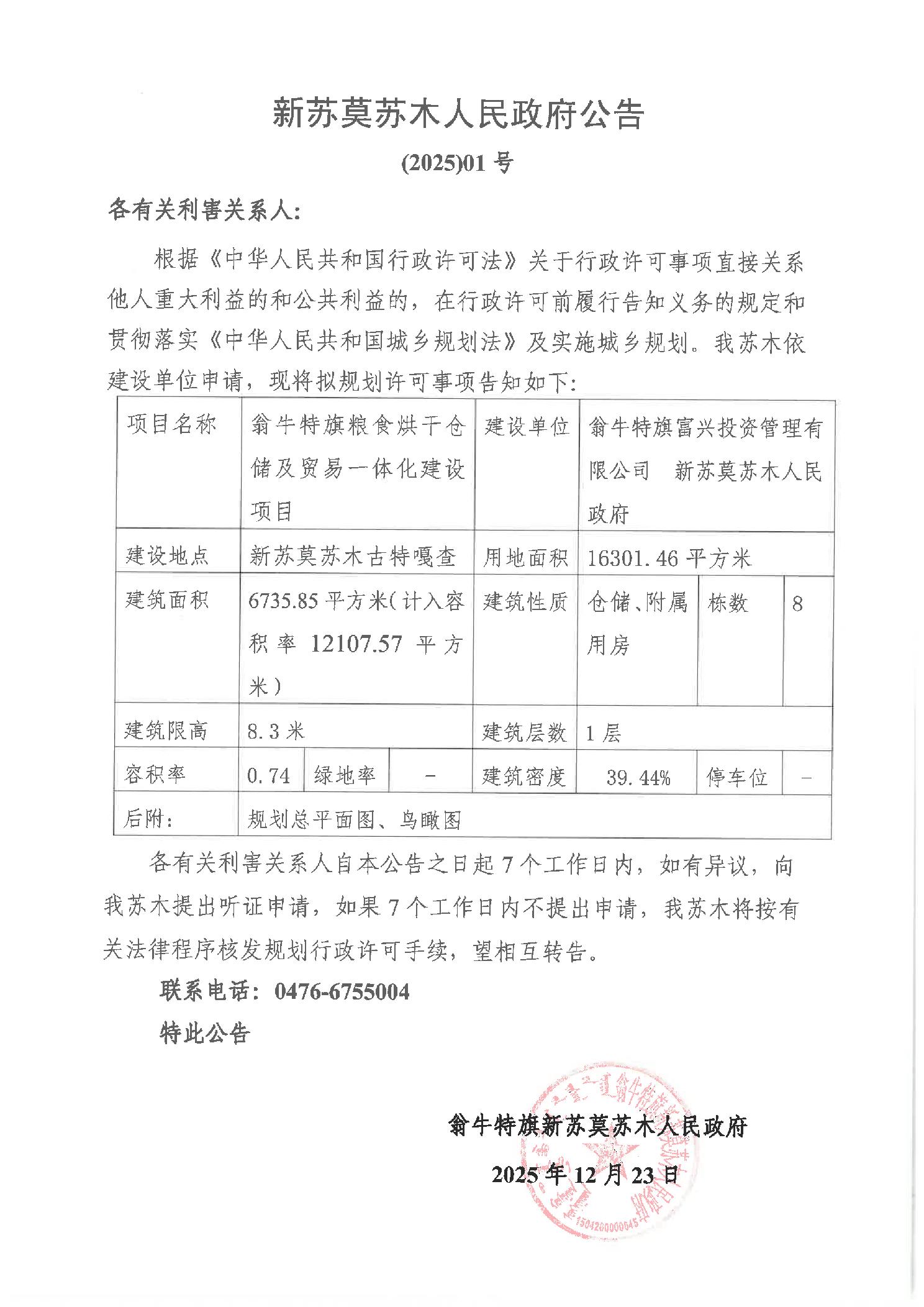 新苏莫苏木人民政府公告 (2025) 01号
