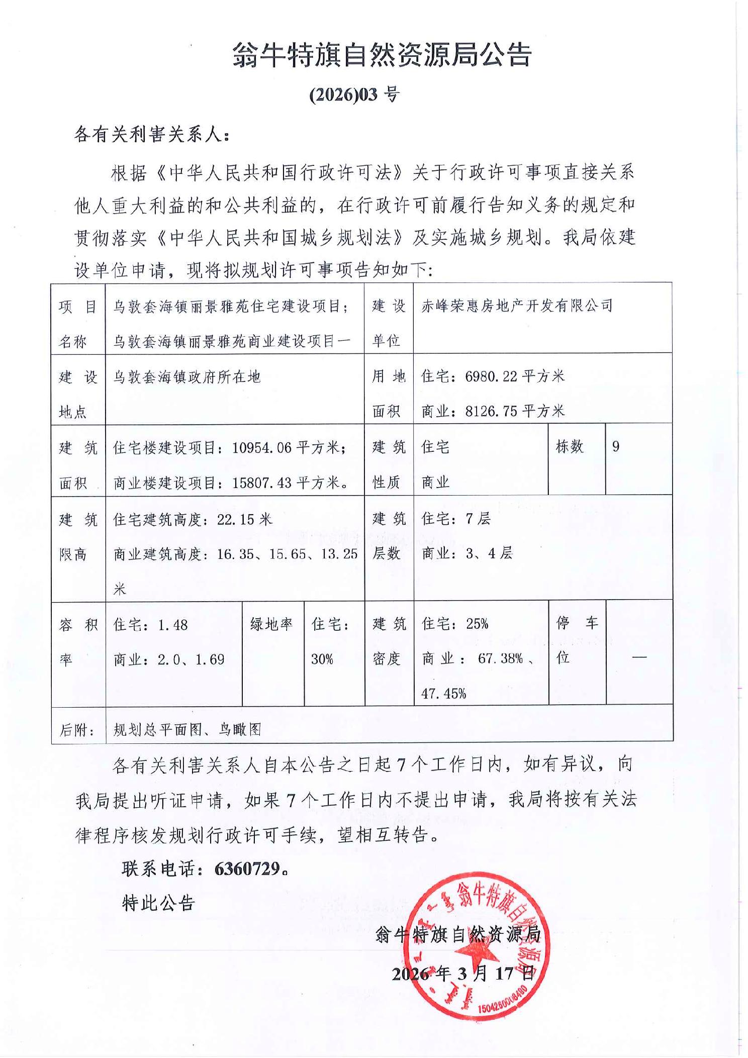 翁牛特旗自然资源局公告 (2026) 3号