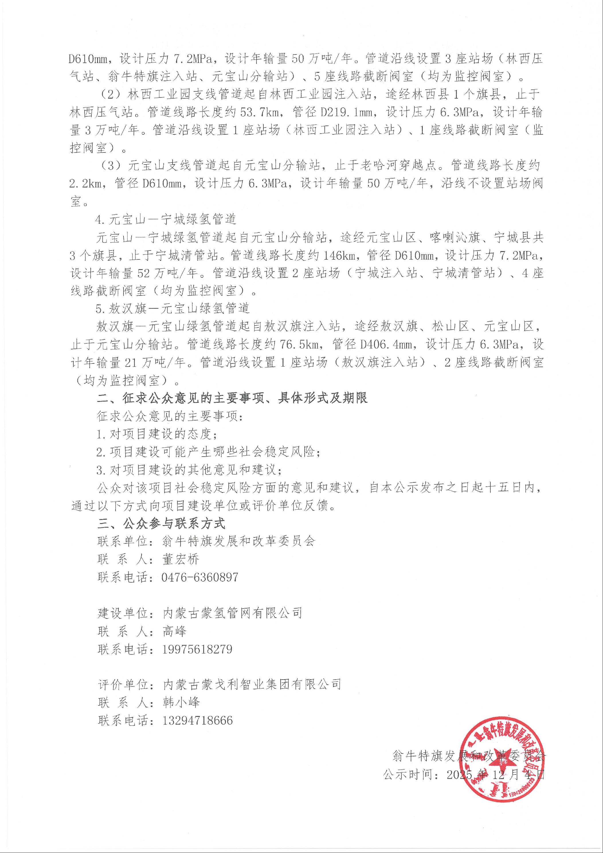 阿鲁科尔沁—宁城绿氢管道项目社会稳定风险评估公示