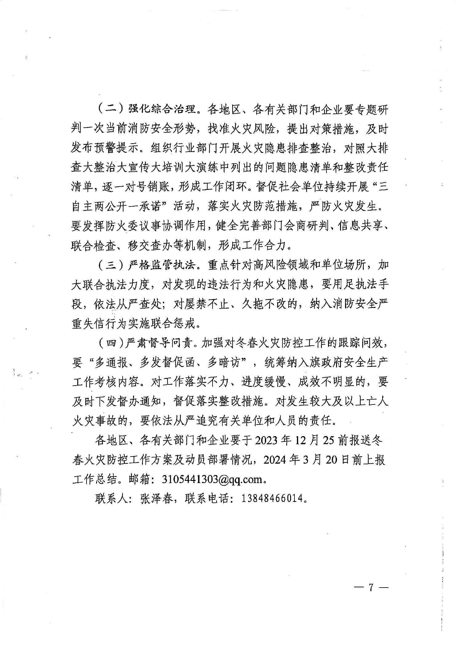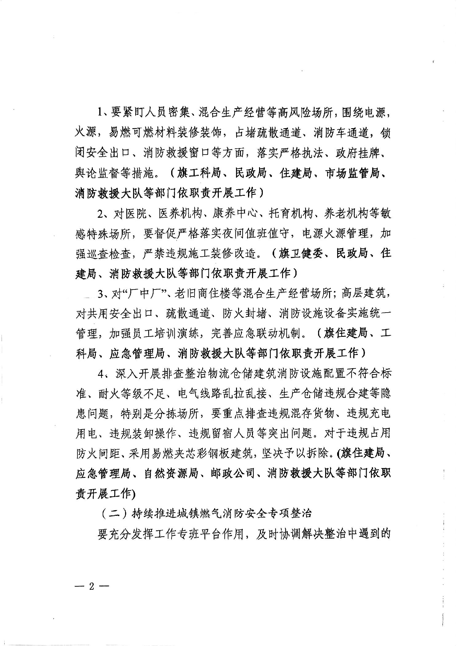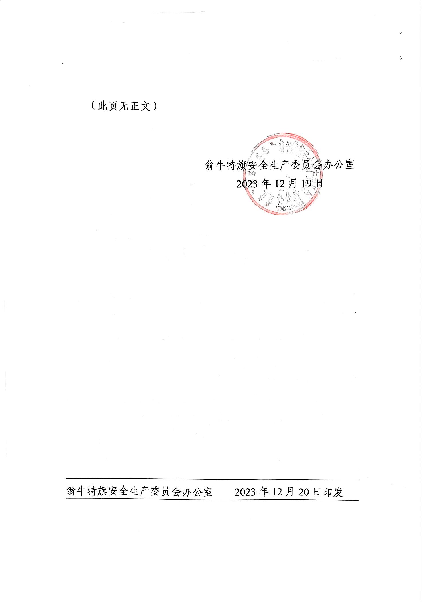 翁牛特旗安全生产委员会办公室关于印发《翁牛特旗冬春火灾防控工作方案》的通知
