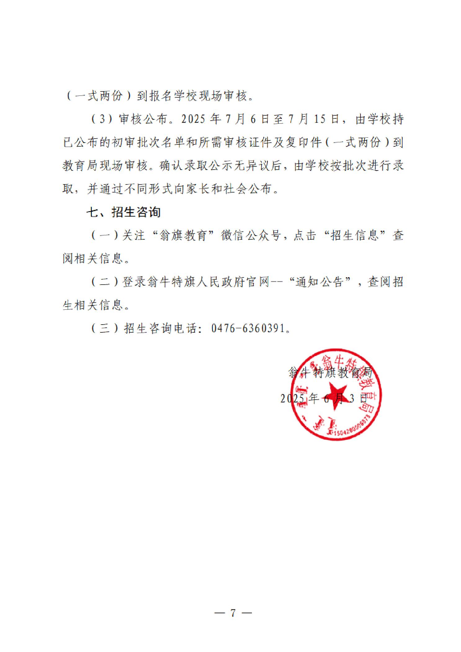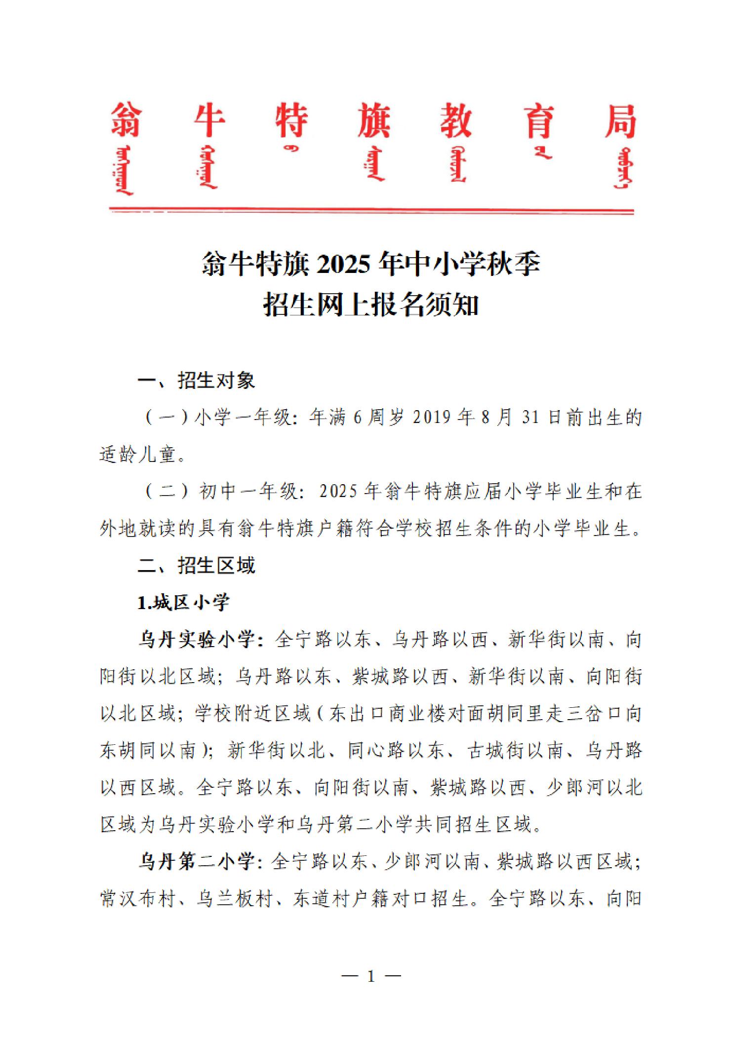 翁牛特旗2025年中小学秋季招生网上报名须知