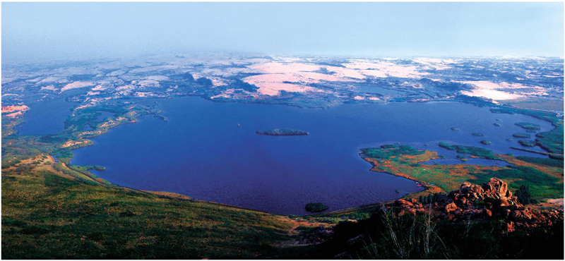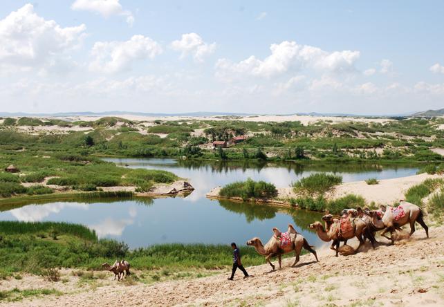 山上古树临风、松涛阵阵;山下牛羊成群,野马奔腾;玉湖碧波荡漾,锦鳞鱼跃,百鸟翔集。蓝天、绿草、白沙、碧水、苍松翠柏、奇岩异石,勾勒出一幅绝好的塞外自然风光画卷,加之古朴的牧区生活习俗,浓郁的蒙古族风情,若能身临其境,定会令您流连忘返。